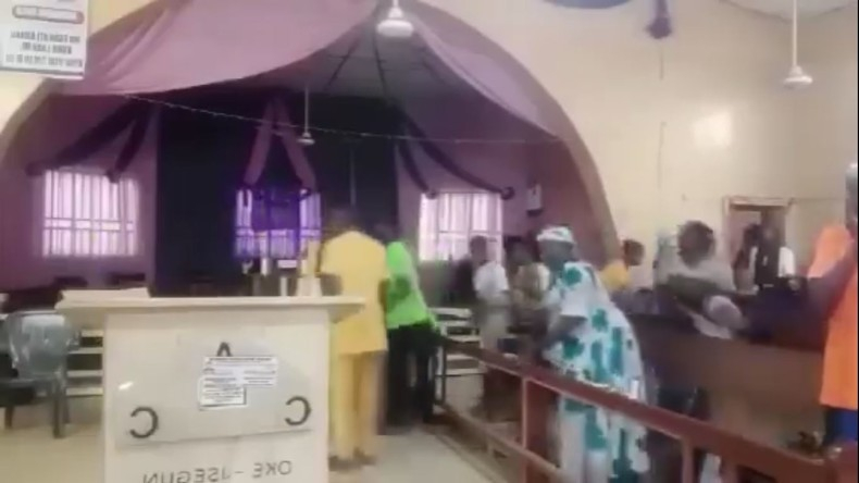 Capture d'écran de la vidéo en direct de l'attaque de l'église lors de laquelle 38 personnes ont été kidnappées par des hommes armés.