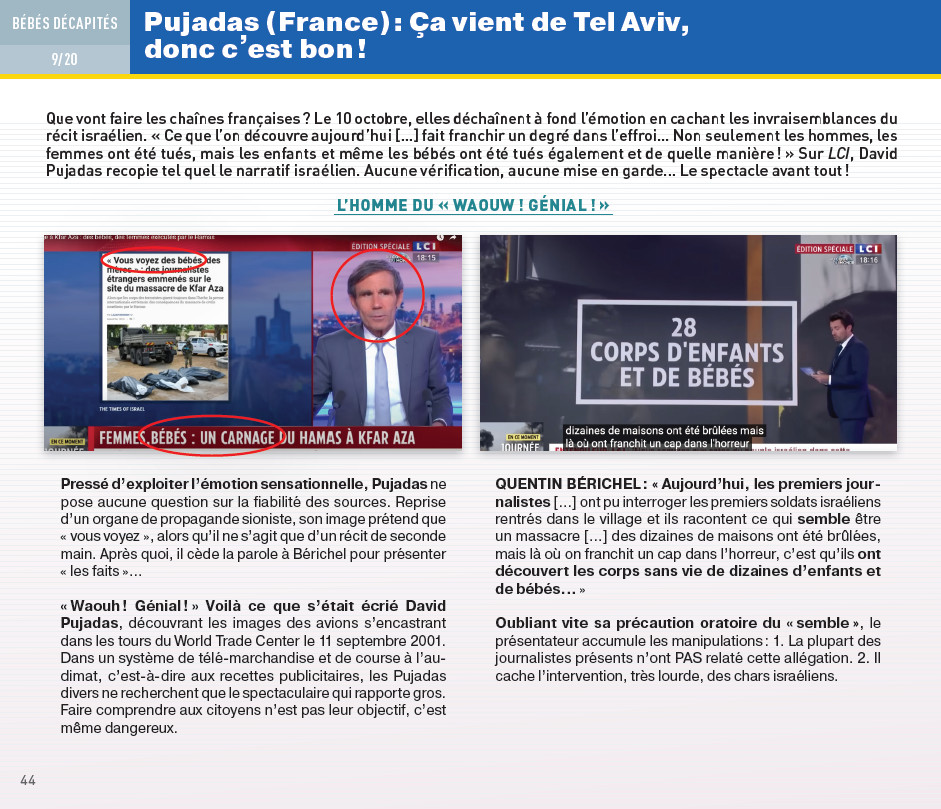 Ces méthodes furent - et demeurent - systématiques sur les principales chaînes françaises de télévision et de radio, publiques comme privées, ainsi que dans les grands journaux et magazines, du centre gauche à l'extrême droite.