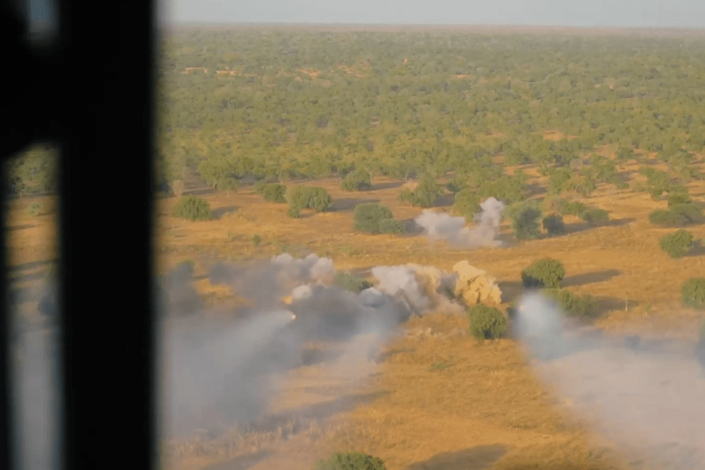 Une base terroriste située au nord de Bamako a été détruite par les forces de l'Africa Corps du ministère russe de la Défense lors d'une opération impliquant un hélicoptère Mi-8 en configuration de combat et une unité de renseignement. Le correspondant de l'African Initiative (AI), Gleb Ervier, a pu observer le travail des militaires directement à bord de l'hélicoptère et prendre des photos uniques.