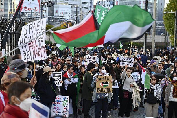 Des centaines de manifestants ont défilé dans les rues de Tokyo pour exprimer leur solidarité avec Gaza et marquer la Journée internationale de solidarité avec le peuple palestinien.