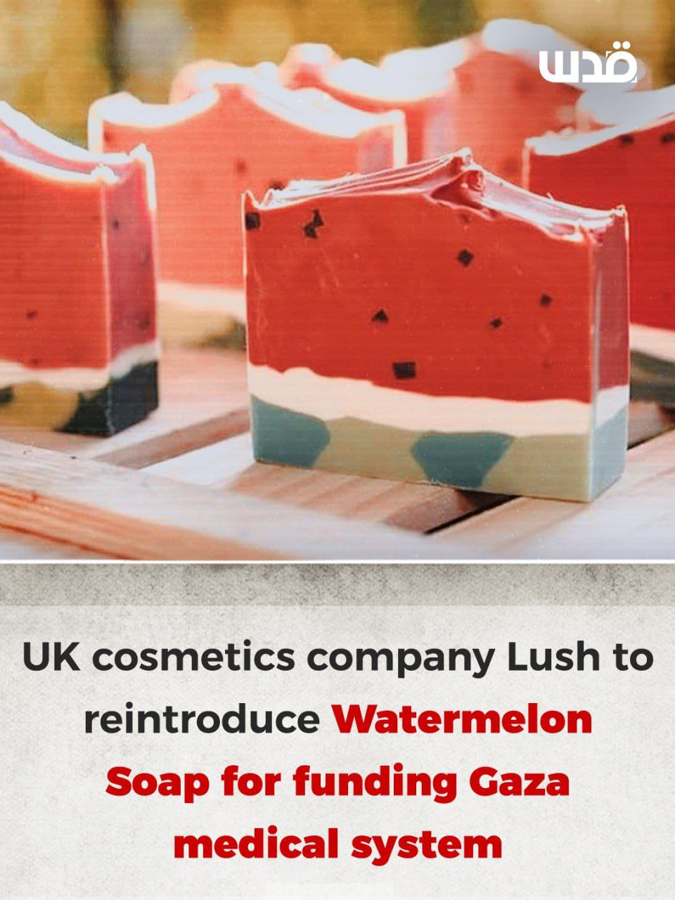 L'entreprise britannique de cosmétiques Lush annonce la relance de son savon populaire « Pastèque », et les bénéfices des ventes seront reversés au soutien des services médicaux à Gaza.