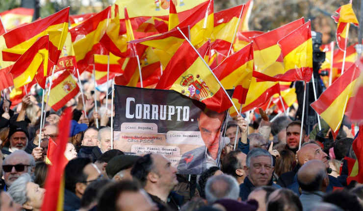 En Espagne, à l'appel du parti d'opposition du centre droite, le Parti populaire (PP), des milliers de personnes se sont rassemblées au centre de Madrid, pour dénoncer la politique du Premier ministre Pedro Sánchez, sous un slogan pompeux mais probablement inadéquat «Mafia ou démocratie». 1