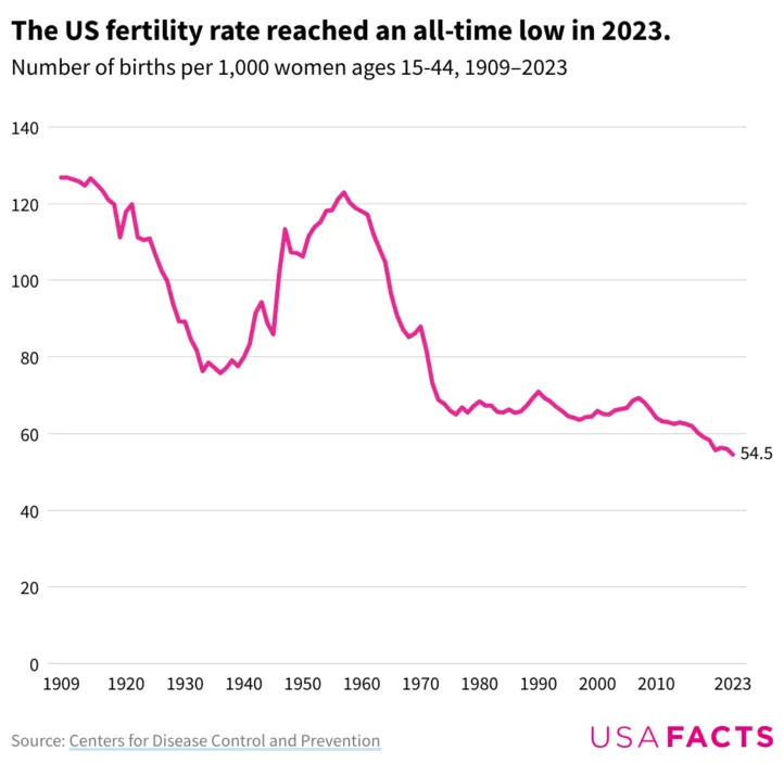 As is evident in the chart below, during the post-war Baby Boom, the fertility rate-as measured by births per 1,000 women-soared from the depressed levels of the Great Depression years back toward its historic peak of 120 per 1,000 in the late 1950s.
