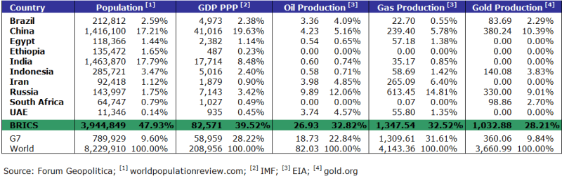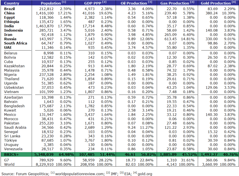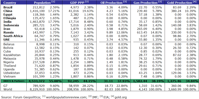 En ce qui concerne le gaz naturel, il convient de noter qu'avec l'adhésion de l'Iran aux BRICS, les deux plus grands producteurs mondiaux de gaz naturel sont tous deux membres des BRICS : la Russie et l'Iran.