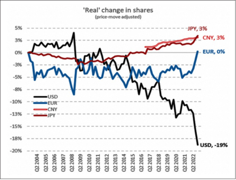 L'utilisation du dollar américain comme arme conduit de plus en plus à un déclin de son utilisation comme monnaie de réserve.