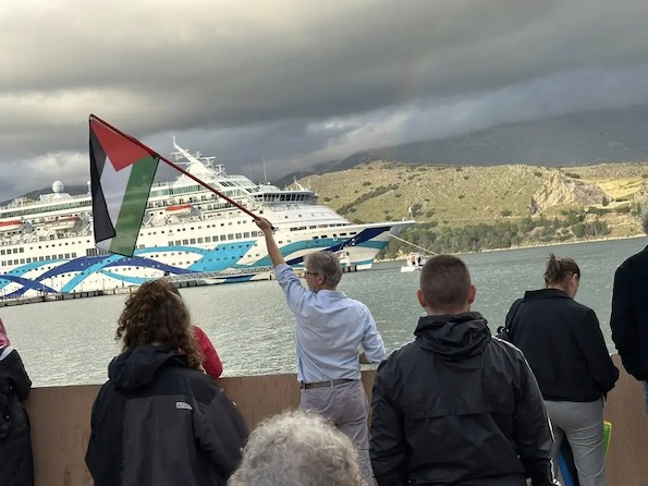 Le navire de croisière Crown Iris, exploité par la compagnie israélienne Mano Maritime, qui coopère avec l'armée israélienne, est récemment arrivé à Brindisi, en Italie. Les passagers ont débarqué sous escorte policière et ont été accueillis par des manifestations pacifiques dénonçant une armée commettant un génocide.