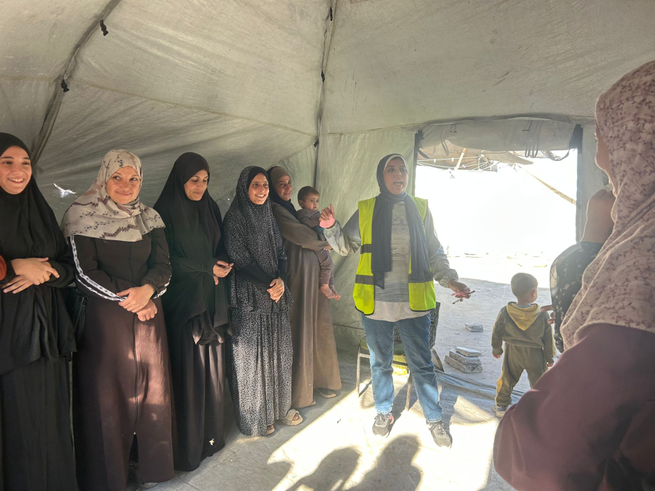 Après avoir souhaité la bienvenue aux 30 participantes, l'équipe est passée à une explication du contenu de l'atelier, l'importance de réserver de courts moments quotidiens pour les soins personnels, même dans les conditions les plus difficiles.