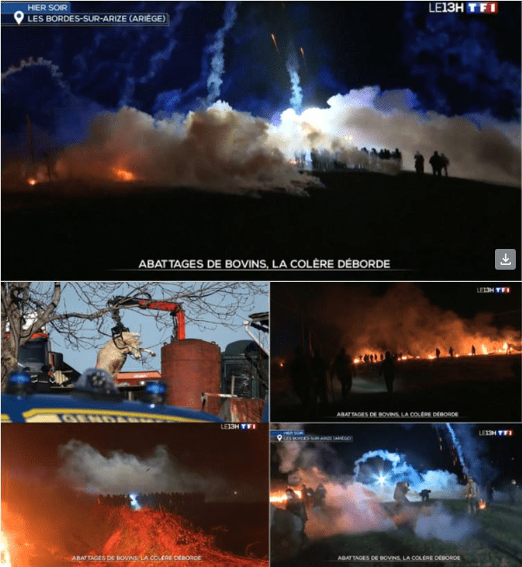Les «perturbateurs» (!!!) en question sont, évidemment, des agriculteurs venus défendre l'un des leurs contre cette démonstration inouïe de violence et de barbarie, et que l'on a exposé aux gaz lacrymogènes.
