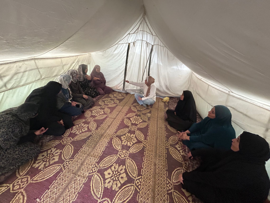 Dans une autre tente à l'ouest de Deir al-Balah : quand les femmes apprennent à affronter la guerre de l'intérieur.