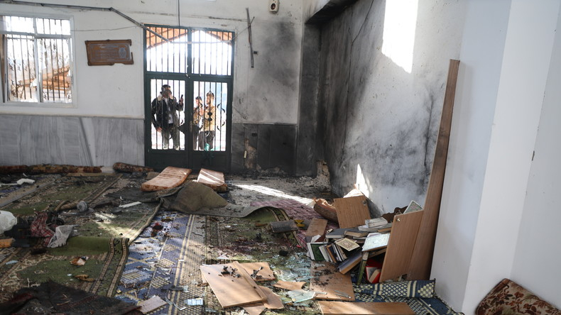Des images publiées par l'agence Sana montrent un mur éventré, des traces noircies par l'explosion, ainsi que des tapis et des livres religieux éparpillés au sol.