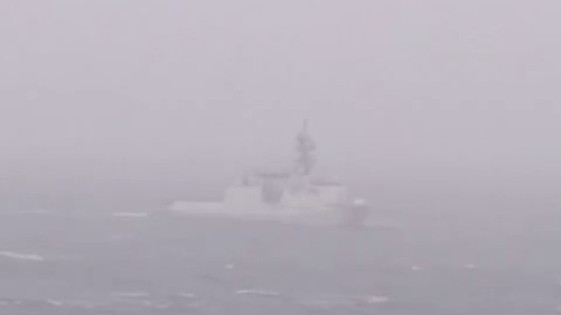 Une source a partagé avec RT une vidéo filmée depuis le pétrolier russe Mariner, poursuivi depuis plusieurs jours par un navire de la garde côtière américaine et visé par une tentative de capture dans l'Atlantique Nord. Les images, tournées par temps de brouillard, montrent un navire militaire qui suit le pétrolier à distance, dans sa trajectoire.