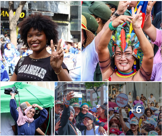 Photos: Caracas, 6 janvier 2026 - Forte mobilisation de centaines d'organisations féministes pour défendre la révolution. « Sans féminisme, pas de socialisme ! » avait annoncé Hugo Chávez. Le 31 décembre 2025, Nicolás Maduro avait inauguré une nouvelle école internationale pour l'émancipation des femmes. Aujourd'hui, la présidente par interim Delcy Rodriguez consacre sa première visite à un autogouvernement communard. La révolution bolivarienne est d'abord une révolution féminine : les communes, les organisations populaires, sont dirigées à 70% par des femmes.
