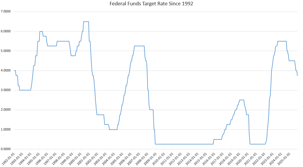 Specifically, the current cycle of Fed rate cuts began in September 2024. Although one could claim that was to create stimulus for the Biden economy, it is nonetheless also true that the FOMC and Powell continued to cut the target rate after Trump was elected. The FOMC cut the target rate in November (after the election) and again in December. The Fed then cut the target rate in September 2025 and again in November 2025. In all, the FOMC cut the target rate by 125 basis points since Trump's election.