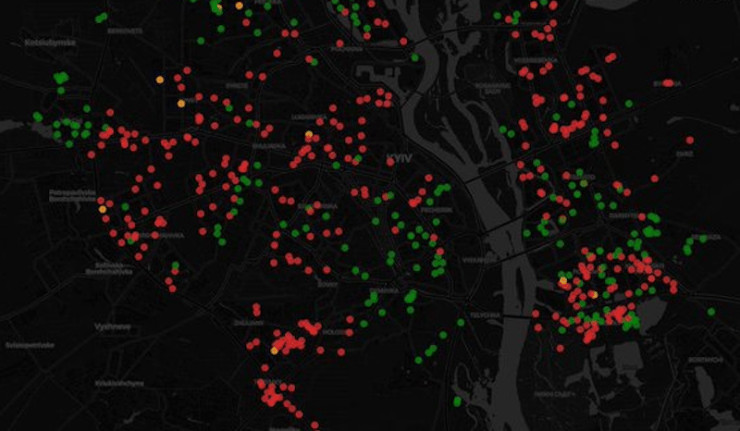 Une source ukrainienne a généré cette carte montrant la panne actuelle à Kiev, le rouge représentant les zones touchées par la panne :