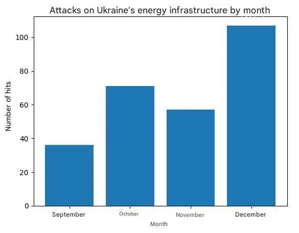 • Durant la période de septembre à décembre, les forces armées russes ont mené 271 attaques contre des sous-stations, des centrales thermiques, des centrales de cogénération, etc. :