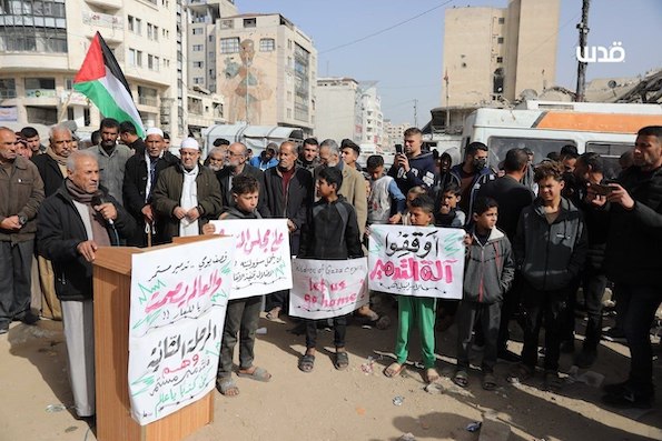 Des Palestiniens ont manifesté à Gaza pour dénoncer l'agression israélienne persistante, les démolitions et les restrictions qui les empêchent de retourner dans leurs foyers situés près de la « ligne jaune », malgré l'annonce de la deuxième phase de l'accord de Charm el-Cheikh.