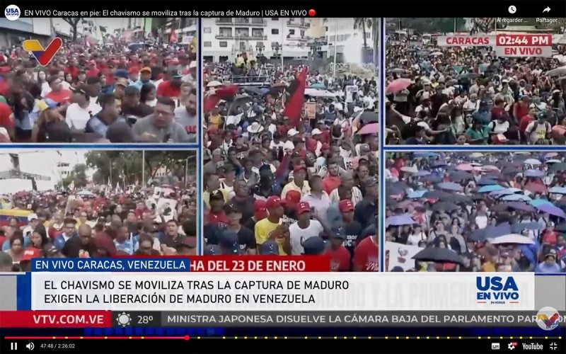Au Venezuela, là où se livre la véritable bataille, un choc qui n'a rien de virtuel, l'appareil d'Etat, loin de s'effondrer, fait preuve d'une forte cohésion. Les droites s'en émeuvent. « Les opposants au régime espéraient une renaissance de la démocratie et des libertés individuelles, c'est, pour l'instant, tout le contraire qui est arrivé, s'indigne implicitement le quotidien Le Monde (8 janvier). On attendait le retour imminent des opposants Maria Corina Machado, Prix Nobel de la Paix 2025, et d'Edmundo Gonzalez Urrutia - qui revendique la victoire lors de l'élection présidentielle de juillet 2024 -, mais c'est Delcy Rodriguez, chaviste convaincue (...) que les Etats-Unis ont adoubée, semant la confusion. » Traduction en version plus intelligible : l'action de Washington est tout à fait condamnable, mais elle l'eut été moins si, décapitant définitivement le chavisme, Trump avait fait le « job » jusqu'au bout.