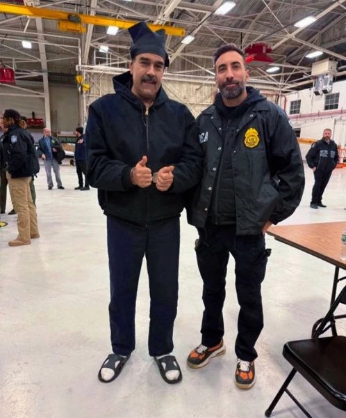 Suit une série de séquences inimaginables dans un monde civilisé. Le président Maduro et Cilla Flores sont transférés à bord du navire d'assaut « USS Iwo Jima ». Ils transitent par Guantánamo. Des photos du chef de l'Etat circulent - entravé, masque sur les yeux, en mode Saddam Hussein ou El « Chapo » Guzman. Il s'agit de salir son image, polluer sa respectabilité. Le couple descend de l'avion sur une base militaire de la région de New York. On se rend compte, à leur démarche, que tous deux ont été blessés. Elle aux côtes, lui aux jambes. Dans l'épreuve, même menotté, Maduro reste Maduro. Il jette un cordial « Happy New Year, good night » à ses geôliers. Des agents de la DEA lui tapent plutôt amicalement sur l'épaule. Il fait un ostensible V de la victoire face caméra.