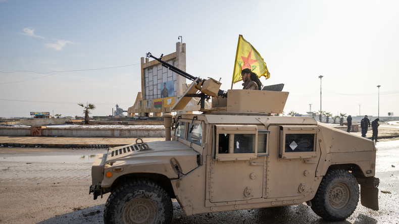Un véhicule blindé appartenant aux Forces démocratiques syriennes (FDS), dominées par les Kurdes.