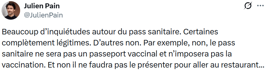 Pendant ce temps, des petits soldats du conformisme continuent de n'y voir niaisement qu'une mesure nécessaire de salubrité publique. Ils gobent goulûment toute la couleuvre gouvernementale, avec une délectation d'ailleurs suspecte, malgré tout le narratif agressivement stupide du COVID qui avait poussé un pass sanitaire «pas destiné à devenir un passeport vaccinal, et non, il ne sera pas nécessaire à aller au restaurant» mais qui terminera comme l'une des expériences de Milgram les plus terrifiante de ces 100 dernières années.