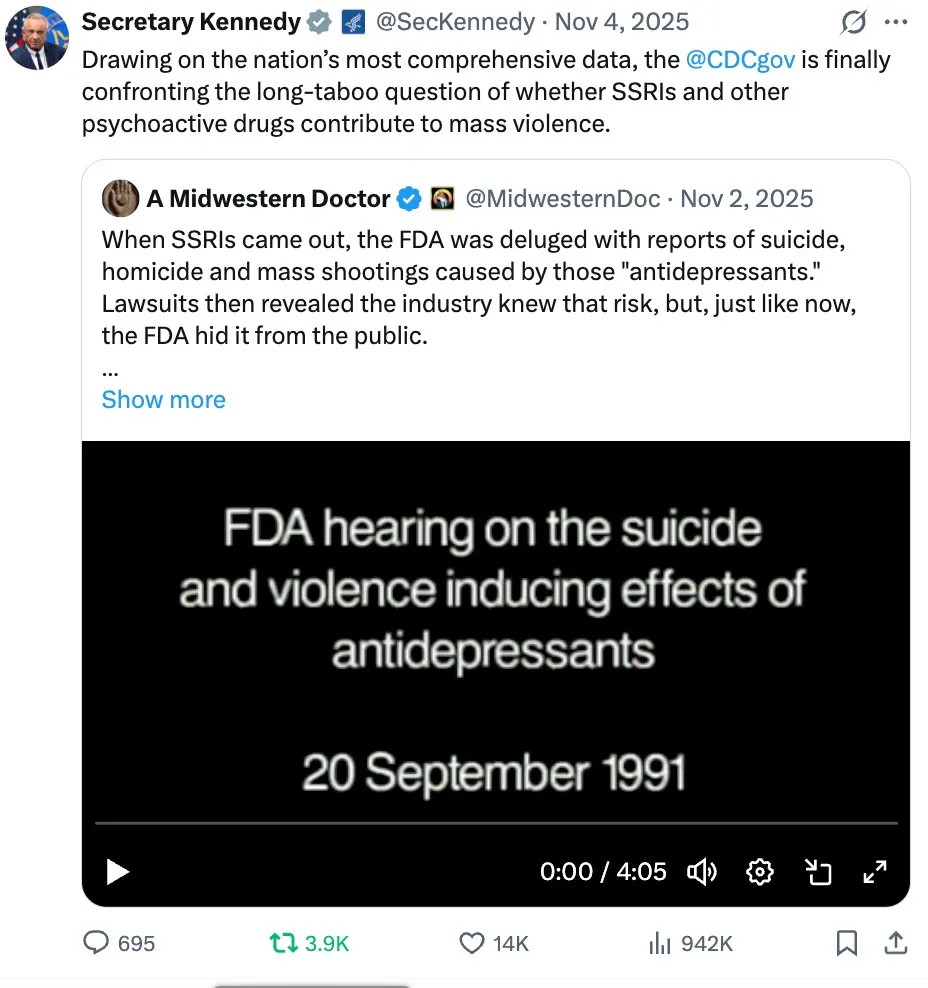 This downhill spiral must stop, and for the first time in my lifetime, the political will to acknowledge and address the harms overprescribed pharmaceutical drugs are inflicting upon society at last exists (e.g., consider RFK's recent statements on antidepressants).