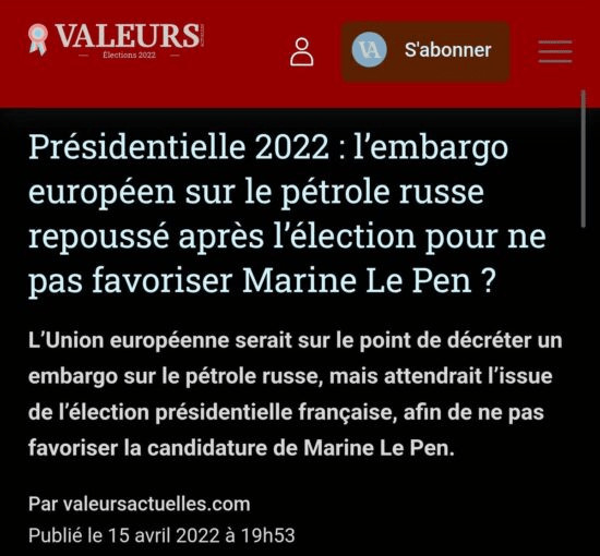 En France, de la même façon, on pourra se remémorer lorsqu'en 2022, la Commission Européenne avait commodément reporté l'application des sanctions sur le pétrole russe après les élections présidentielles pour éviter qu'une hausse des prix ne bénéficie à Le Pen.