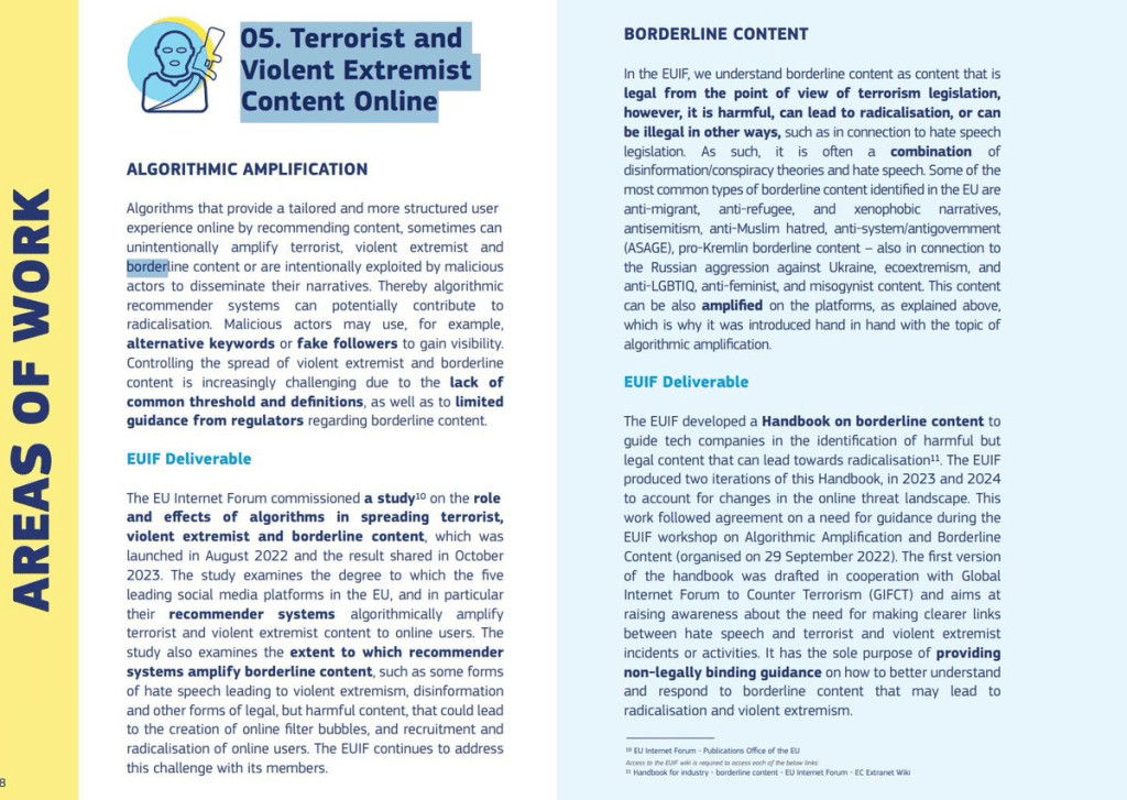 - Contenu anti-gouvernemental/anti-UE