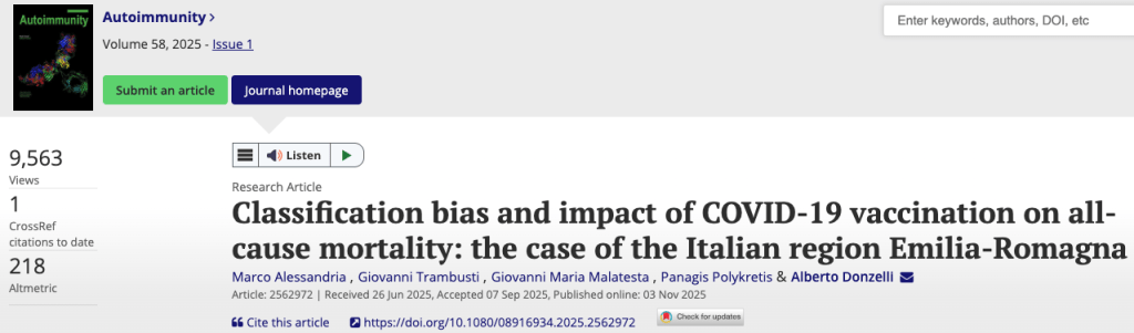 - Alessandria, G. Trambusti, G. Malatesta, P. Polykretis, A. Donzelli, Classification bias and impact of COVID-19 vaccination on all-cause mortality : the case of the Italian region Emilia-Romagna, Autoimmunity 58 (2025) 2562972. doi.org.