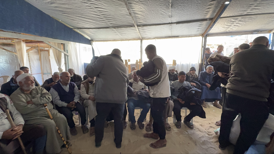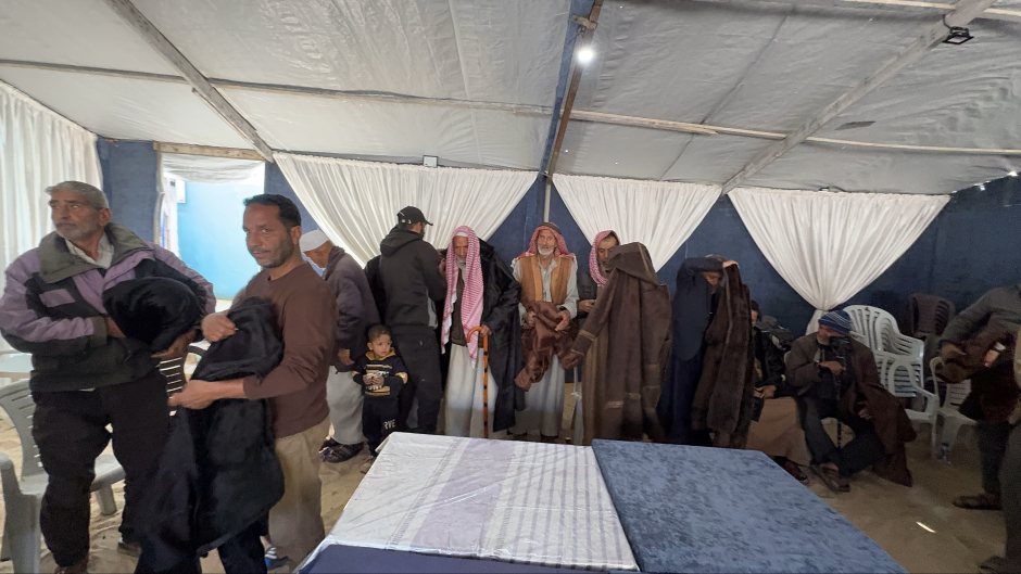 Lors de cette rencontre, l'objectif était clair dès le premier instant : écouter sincèrement les problèmes des agriculteurs déplacés dans les camps de déplacement de la zone de Mawassi à Khan Younès, et offrir à leurs aînés un peu de chaleur grâce à la distribution de manteaux d'hiver, atténuer la dureté de l'hiver et celle de la vie en même temps. Quant au contexte de l'initiative, il s'est formé à partir d'appels lancés par les agriculteurs âgés eux-mêmes, lorsqu'ils ont demandé aux équipes de l'UJFP travaillant dans leurs camps d'organiser une rencontre qui les réunirait, écouterait leur voix, examinerait leurs problèmes accumulés et chercherait des solutions, dans les limites du possible. De là est née l'idée de l'initiative, pour fournir des manteaux d'hiver afin de les protéger du froid, mais aussi pour affirmer que ces agriculteurs restent une partie intégrante de la société et qu'ils ont droit à la chaleur et à la dignité, au même titre que les autres catégories ayant bénéficié de cette initiative humanitaire.