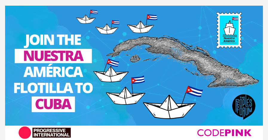 Une coalition d'organisations progressistes et de mouvements sociaux (don't  Progressive International,  CODEPINK, The  People's Forum,  des syndicats nord-américains et  latino-américains) organise une flottille de navires vers Cuba, baptisée " Nuestra América Flotilla"