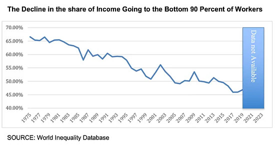 This distribution of the gains to the few and the costs to the many is not inevitable, it was the direct result of policy choices made by our political class in response to the money and lobbying funded by the few to increase their share of the economy's gains by any means available.