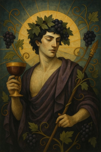 - Logos de Dionysos (Logos Obscur) : la clé se trouve ici. Dionysos est l'intermédiaire. Il n'est ni la lumière stérile d'Apollon, ni la boue de Cybèle. C'est le « soleil de minuit », un dieu qui meurt et ressuscite. C'est le principe du paradoxe.