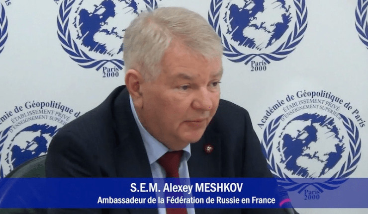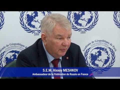 Dans le cadre de son programme d'études diplomatiques, l'Académie de Géopolitique de Paris a eu l'honneur d'organiser une conférence de Son Excellence l'Ambassadeur de la Fédération de Russie en France, Monsieur Alexey Meshkov, intitulée "Enjeux stratégiques de la sécurité euro-asiatique".