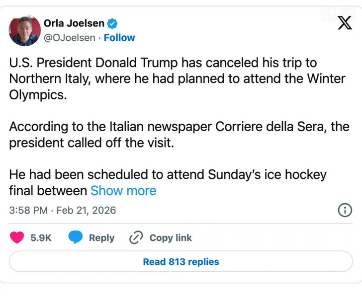 "Cependant, son agenda indique désormais qu'il participera plutôt à deux réunions à la Maison-Blanche ce jour-là. L'annulation a également été confirmée par le consulat des États-Unis à Milan."