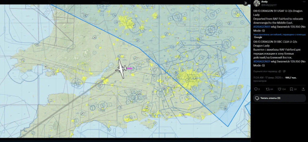 Un important contingent d'avions de l'US Air Force se dirige vers le Moyen-Orient pour renforcer les forces déjà présentes, alors que le président américain Donald Trump envisage une attaque contre l'Iran. Le suivi en ligne montre que des chasseurs F-22 Raptor, des F-16 Fighting Falcon, des avions radar E-3 Sentry et un avion espion U-2 Dragon Lady (incroyable, même ce vétéran est mis à contribution !) traversent l'Atlantique ou viennent d'arriver en Europe. De plus, le septième destroyer lance-missiles, le sous-marin de classe Arleigh Burke, le Pinkney, ont récemment été déployés dans la zone de responsabilité du Commandement central américain.