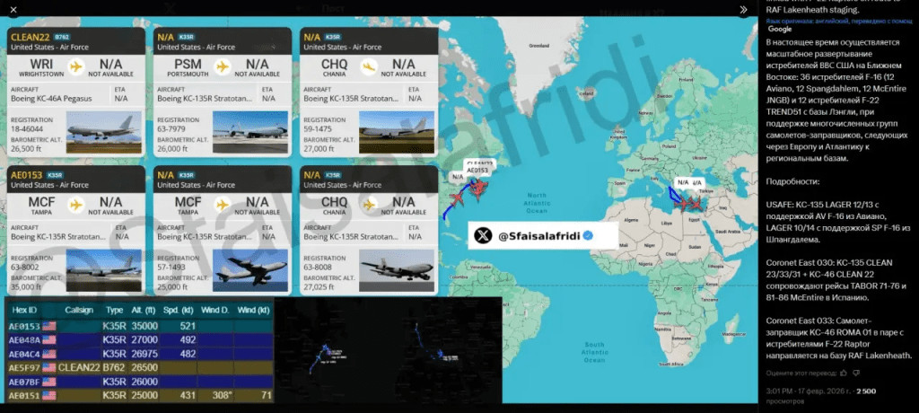 Comme nous l'avons déjà indiqué, deux avions E-3 Sentry de détection et de contrôle aéroportés (AEW&C) ont atterri sur la base aérienne de Mildenhall au Royaume-Uni, et il ne fait aucun doute que leur prochaine destination sera le Moyen-Orient.