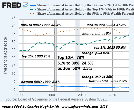An economy where people are increasingly relying on gambling as their last-ditch means to secure a future that is less precarious than the present is not a "good economy" except for the top 10%. And to the degree their wealth is also a gamble placed in a central-bank casino, the precarity of all this wealth is masked by the artificial "goodness" of statistics that reflect artifices rather than the real world.