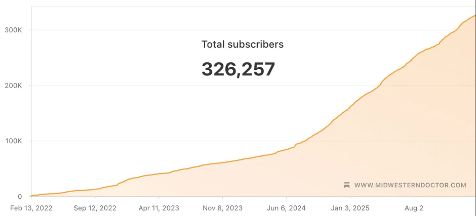 Put differently, I didn't expect this to go anywhere (hence my bland username). My thought was that maybe one day I would have 10,000 readers, and that this newsletter would just be a part-time activity I did in my free time to make it easier for me to fulfill my goal of helping people. However, the way the universe works, sometimes people are just in the right place at the right time, and a year ago, The Forgotten Side of Medicine became the top health newsletter on here.