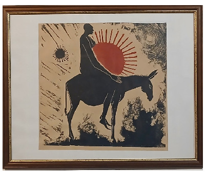 Dans un tableau du peintre palestinien El Alaj, une jeune femme enceinte est assise sur un âne, petit animal insécable de l'identité de ce peuple.
