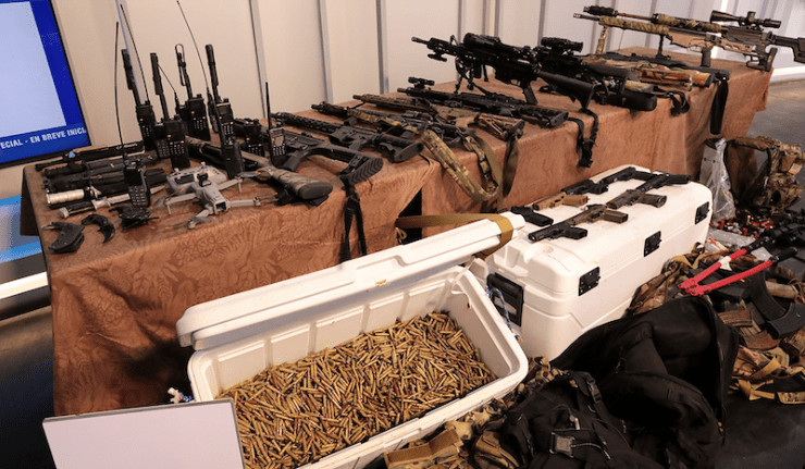 Lors de l'inspection ont été saisi des fusils de différents calibres, un fusil de chasse Winchester, des fusils, de type DB AR-15, un fusil Delta, 11 pistolets et un module individuel pour chacun des 10 occupants comprenant un fusil, un pistolet, un couteau, un uniforme de camouflage, des médicaments, des passe-montagnes, un casque et d'autres choses. Ils portaient aussi des moyens de communication, du matériel de vision et des produits stériles.