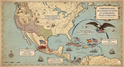 L'examen historique des guerres menées sur le territoire des États-Unis et dans l'hémisphère occidental révèle une continuité fondamentale. La violence n'est pas une anomalie de l'histoire américaine : elle en est la matrice. De la destruction des nations amérindiennes à l'ingérence permanente en Amérique latine et dans les Caraïbes, la même logique se répète au fil des siècles.