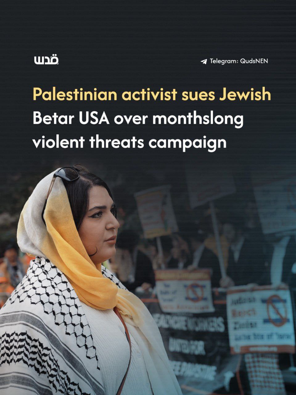 La militante palestino-américaine Nerdeen Kiswani, fondatrice de l'organisation Within Our Lifetime (Pendant notre Vie), a déposé une plainte fédérale pour violation des droits civiques contre le Betar USA, suite à une campagne de menaces violentes, de harcèlement et d'intimidation qui a duré plusieurs mois.