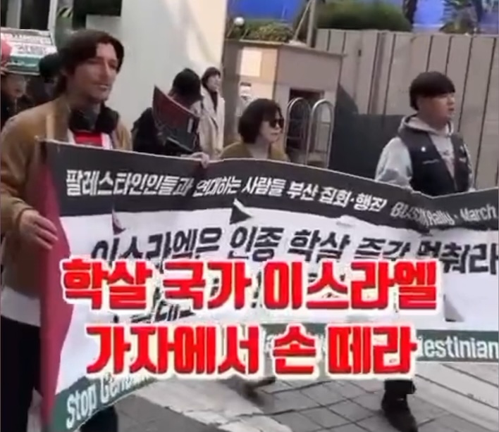 Manifestation dans les rues de Busan, en Corée du Sud, pour dénoncer la guerre américano-israélienne contre l'Iran et réclamer justice pour la Palestine.