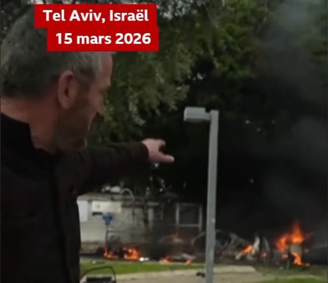 Des images prises sur place montrent un impact direct des missiles iraniens et libanais et on peut voir que la défense aérienne israélienne ne parvient pas à intercepter un missile iranien au-dessus de Tel Aviv.