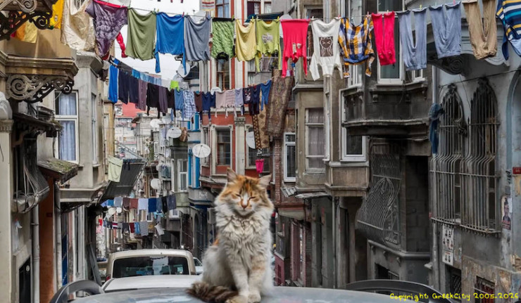 Tandis que Séféris cherchait un moyen pour se rendre à son ambassade, Kavvadías en connaisseur des lieux lui proposa de lui servir de guide. N'ayant guère d'autre choix et ne trouvant aucune excuse, Séféris accepta. Au cours d'un trajet en voiture, les deux hommes traversèrent un quartier à forte présence grecque. Aux balcons flottaient des drapeaux helléniques, des pots de basilic ornaient les murs et l'on entendait des chants populaires grecs, du rebétiko.