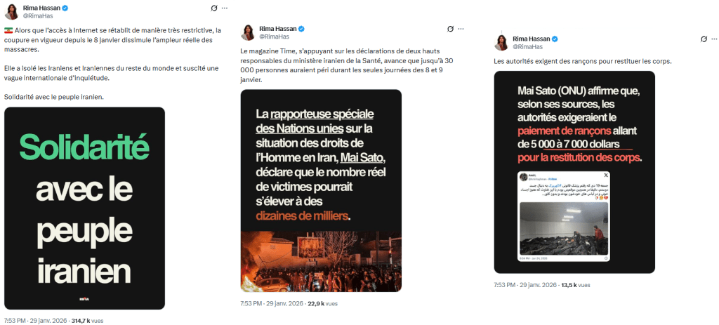 Il est absolument écœurant de constater que plus de deux ans de génocide à Gaza n'ont rien fait pour dissiper l'ignorance crasse, imprégnée de racisme et d'islamophobie, de nos prétendues élites progressistes quant aux réalités du Moyen-Orient. Dès le mois de janvier, lors des émeutes sanglantes en Iran ouvertement soutenues par Israël et les États-Unis, qui n'étaient qu'une tentative de "révolution de couleur" (lire Révolution de couleur en Iran : la complicité abjecte des médias occidentaux), LFI a immédiatement validé la propagande atlantiste. Même Rima Hassan, qui est souvent la "voix de la sagesse", combattant les réflexes paternalistes de la gauche, n'a pas jugé nécessaire de mentionner le recours généralisé aux armes blanches et aux armes lourdes chez les "manifestants pacifiques" et le meurtre de centaines de membres des forces de sécurité, et a cautionné le chiffre fantaisiste de 30 000 manifestants tués, alors qu'il a été fabriqué de toutes pièces par une opposante de la diaspora (lire Une ancienne blogueuse de mode et un médecin douteux à l'origine de l'opération psychologique "30 000 morts" en Iran). Elle a même pris pour argent comptant l'ignoble accusation selon laquelle les familles des victimes devraient payer des rançons pour récupérer les cadavres de leurs proches. Celle-là même qui, à raison, dénonçait la propagande génocidaire sur le 7 octobre, suscitant l'indignation d'un Aymeric Caron, a commis la même faute en calomniant le principal soutien de la Palestine (et qui en paie le prix fort depuis 1979), préparant le terrain à l'agression impérialiste en lui fournissant une justification morale. Une véritable trahison.