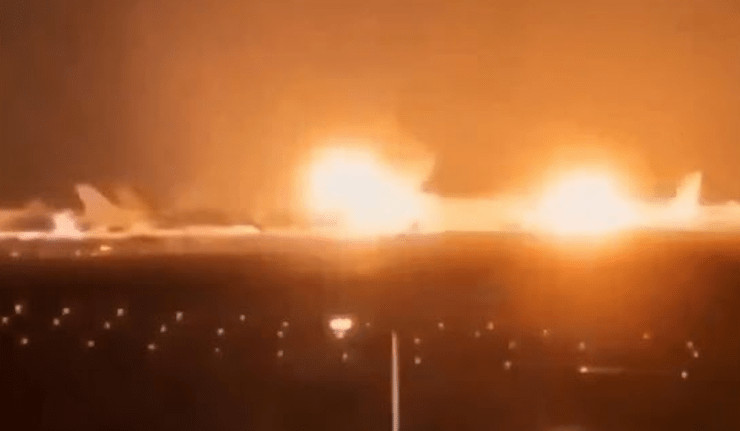 De grandes explosions et des bouffées de feu étaient visibles à divers endroits de l'aéroport, comme le montre la vidéo ci-dessous.