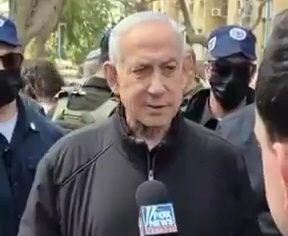 S'exprimant depuis Arad, lieu du bombardement iranien de la nuit dernière dans le sud d'Israël Netanyahou a exhorté les dirigeants mondiaux à se joindre à l'agression en cours contre l'Iran.