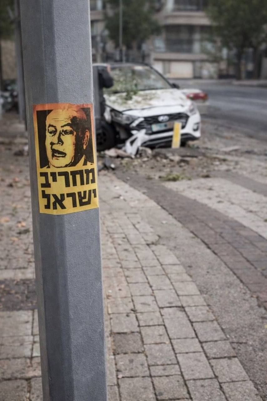 À Tel Aviv, une photo le montre avec l'inscription "Le destructeur d'Israël", un véhicule détruit par un missile iranien en arrière-plan.