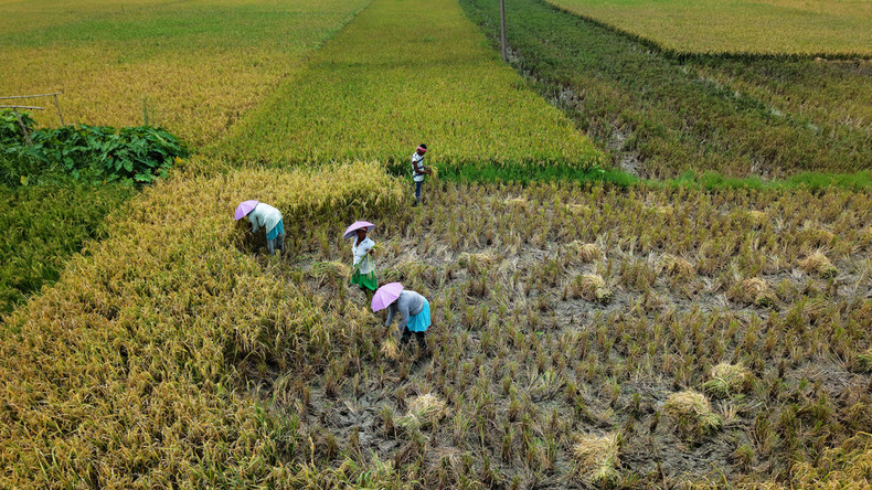 Des agriculteurs récoltent le riz dans une rizière à la périphérie de Guwahati, en Inde, en mai 2025. [Photo d'illustration]